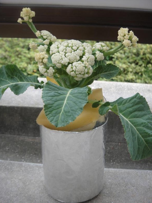 水耕栽培カリフラワー開花☆